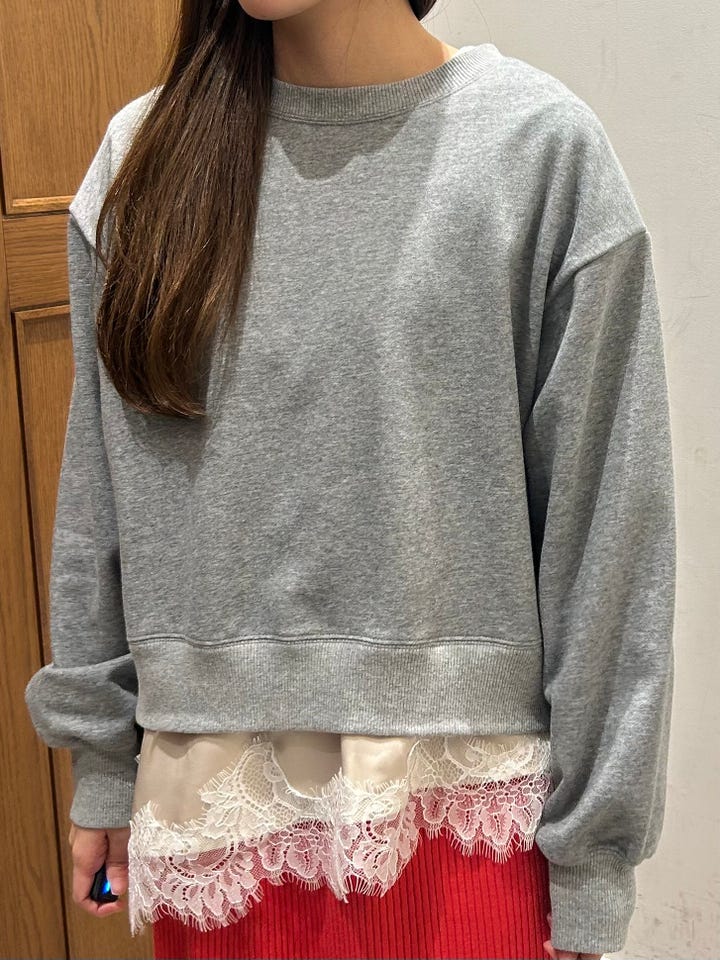 〔ONE SIZE〕SHIPS Colors:〈手洗い可能〉レース レイヤード 裏毛 トップス◇