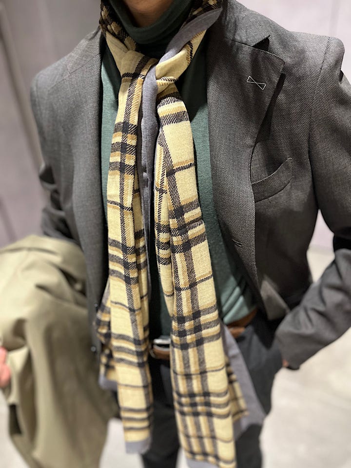 〔ONE SIZE〕SHIPS: イタリア製 ライト ウェイト オーバー チェック ストール
