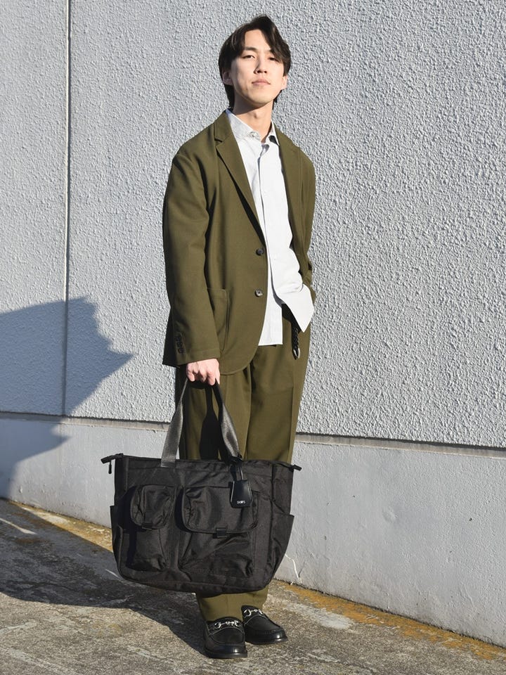 普段はMサイズですが、あえてLサイズを着用し余裕のあるスタイリングにしています。