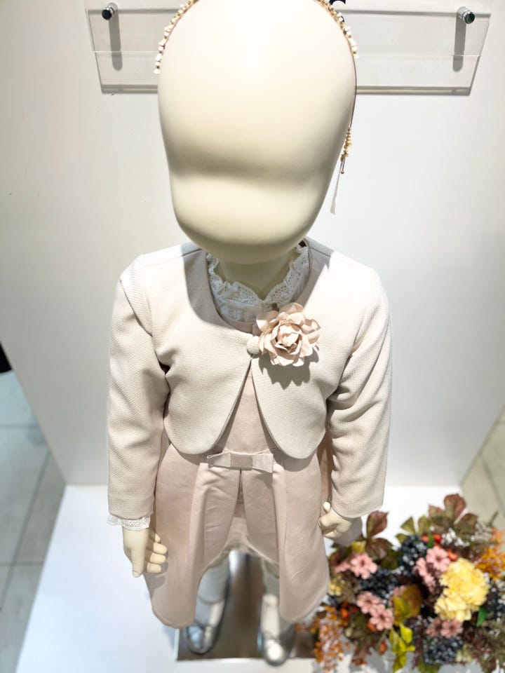 華やかなコサージュ付きのボレロジャケットです。