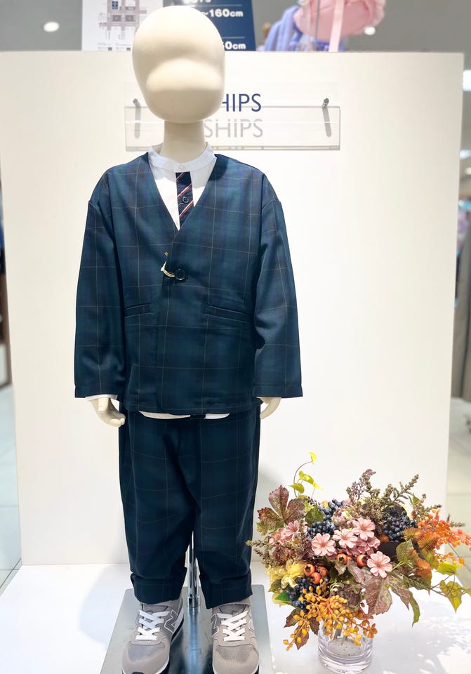 〔120〕SHIPS KIDS:100〜130cm / 50th ANNIV セレモニー チェック ノーカラー ジャケット