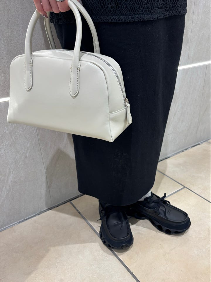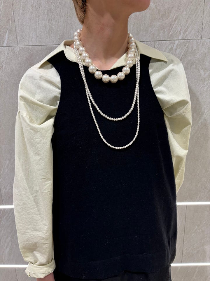 素材感・着心地:コットンリネン素材なので、程よくドレッシーでカジュアルな雰囲気です。素材の切り替えとサイドに入ったスリットがポイントです。今回はレイヤードして着用しましたが、コンパクトですっきりとしたサイズ感なので一枚でサラッと着るのもおすすめです!