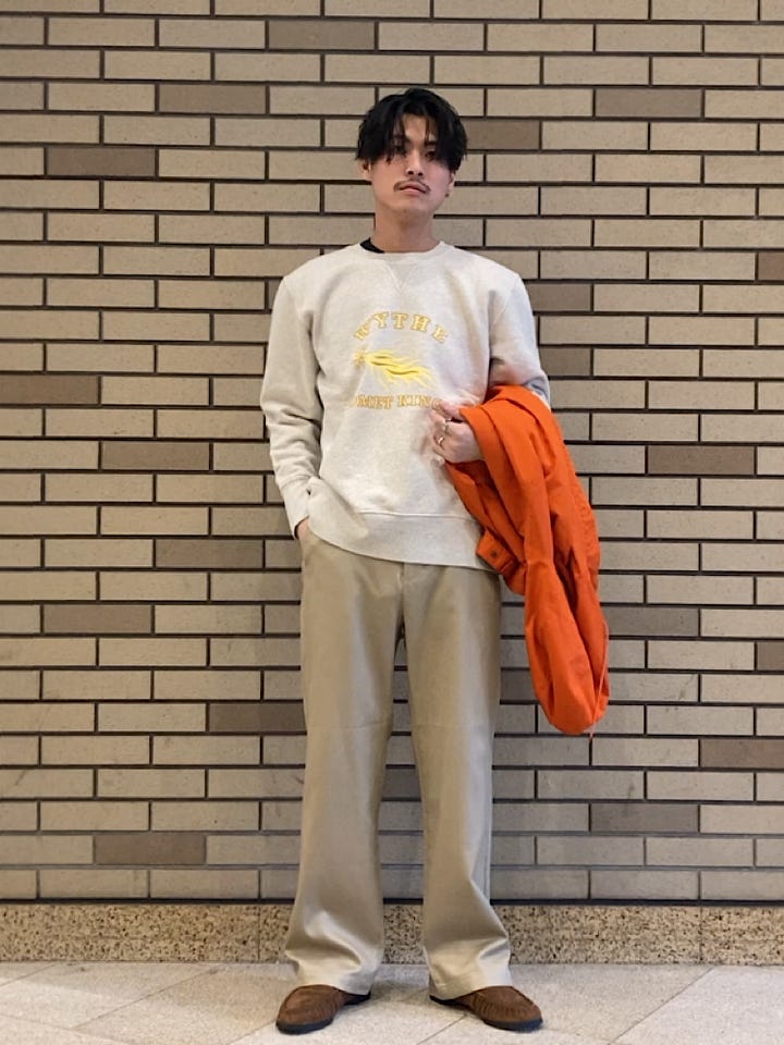 サイズ感:ジャストサイズ、シルエットが綺麗でとろみが少しあるので、スラックス風にもチノパン使いもできるサイズ感です。