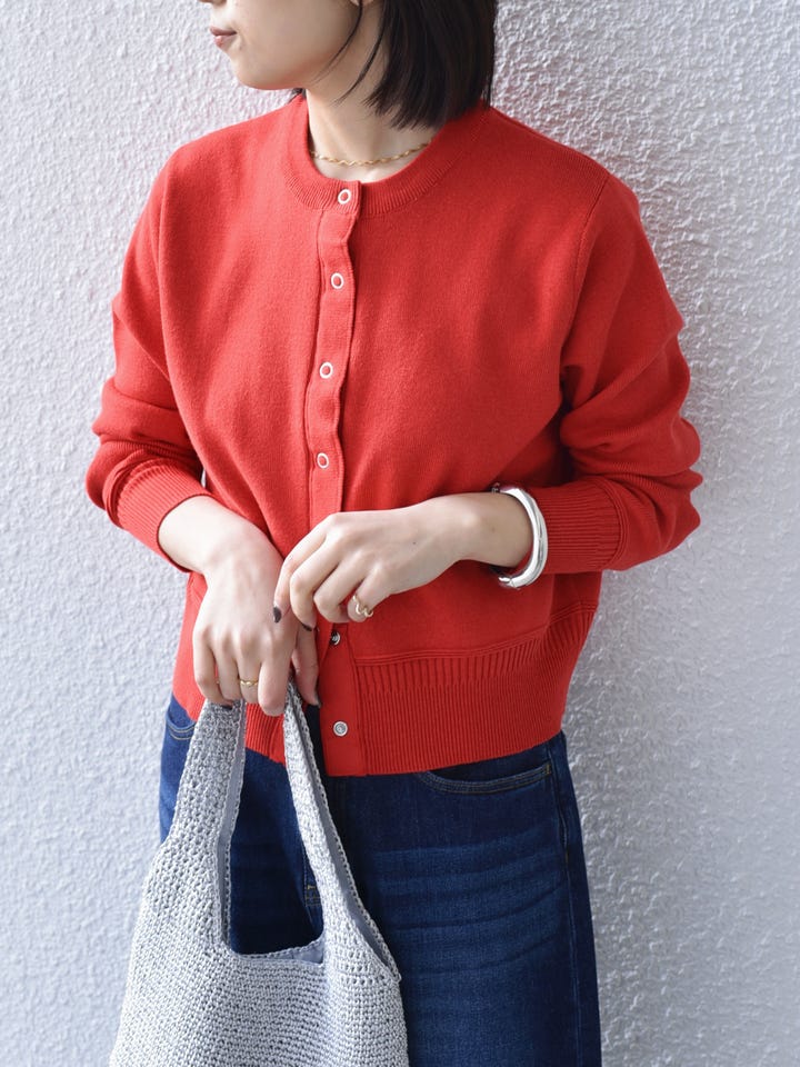 着用アイテム:〈手洗い可能〉スウェットライク リングドット カーディガン