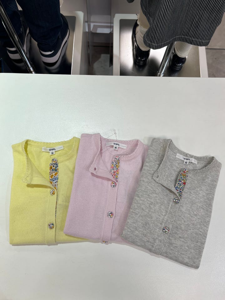 〔80〕SHIPS KIDS:80〜90cm / リバティ ボタン カーディガン