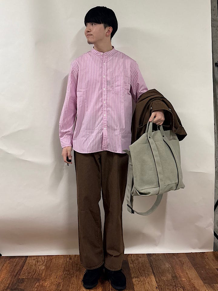 〔LARGE〕SHIPS: バンドカラー ブロード シャツ ロングスリーブ