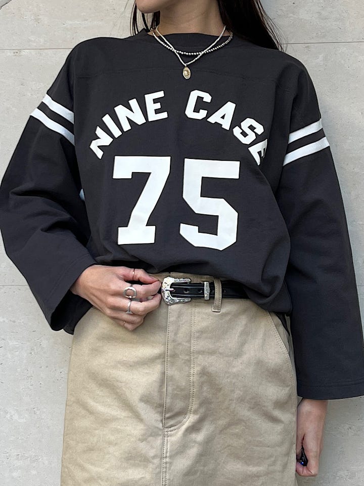 〔ONE SIZE〕NINE CASE:〈洗濯機可能〉七分袖 フットボール TEE