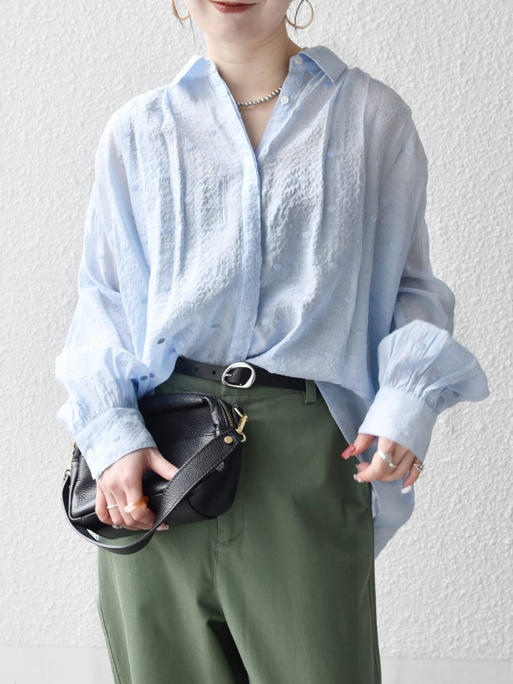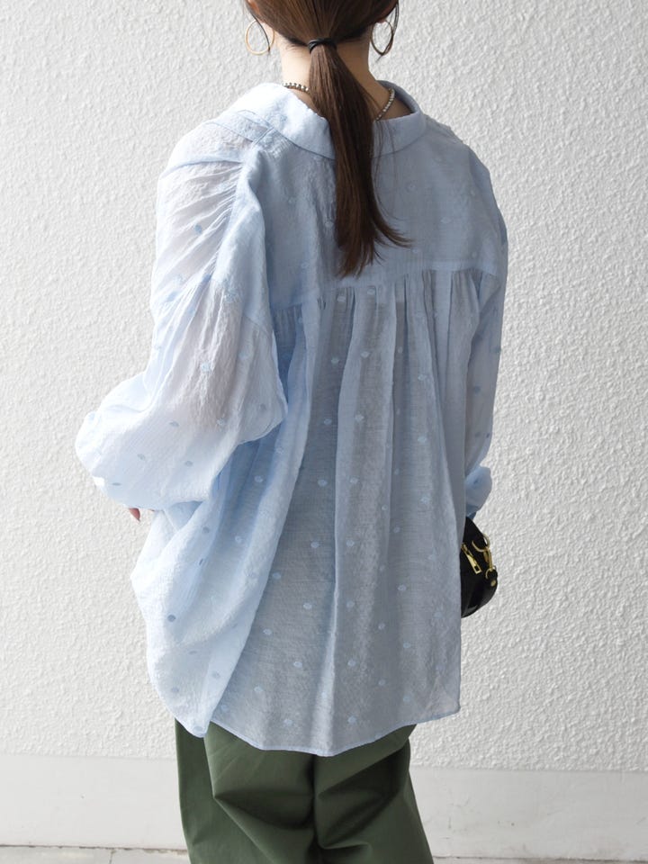 着用アイテム:【WEB限定】SHIPS any:〈手洗い可能〉シアー ドット レギュラーカラー ギャザー シャツ