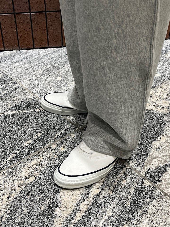 サイズ感: 絶妙な丈感の為スウェット特有のだらけた感じにはならない。