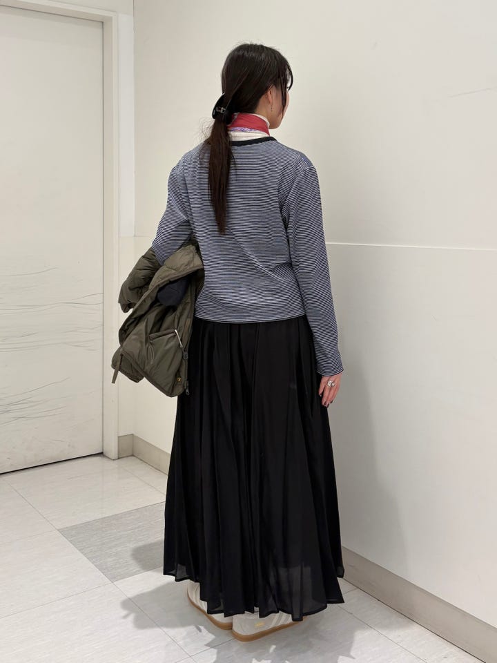 丈が短めでスカートなどボトムにボリュームがある合わせもバランスがとりやすいです!