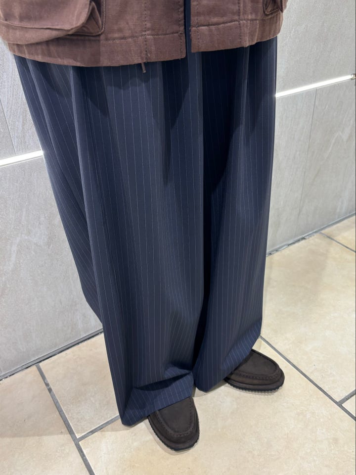 素材感・着心地:さらっと滑らかな肌触りです。太さはありますが、落ち感がある素材のため程よいルーズ感で履けます。