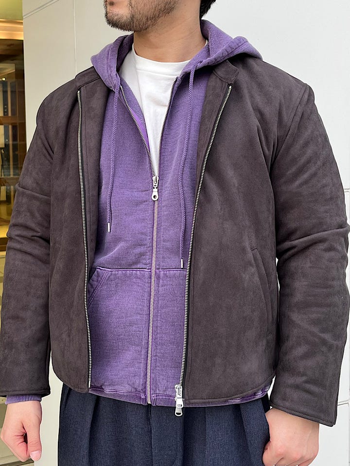着心地:フェイクスウェードなので馴染みやすく着用していて楽なジャケットです。
