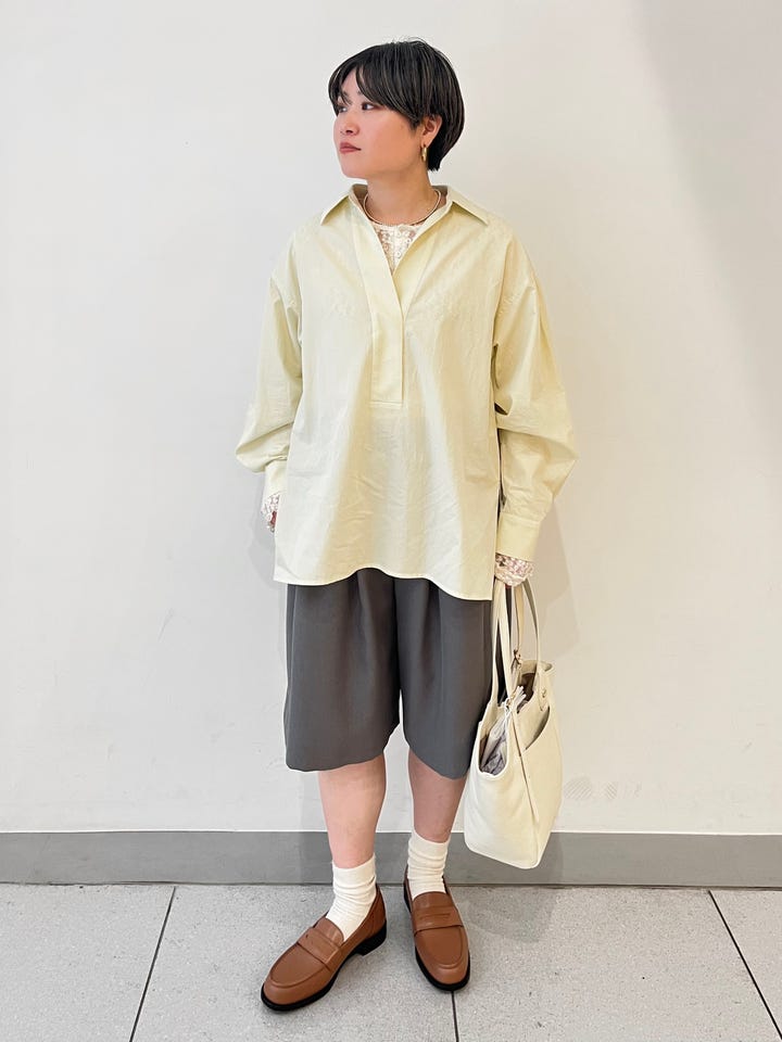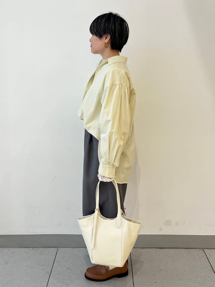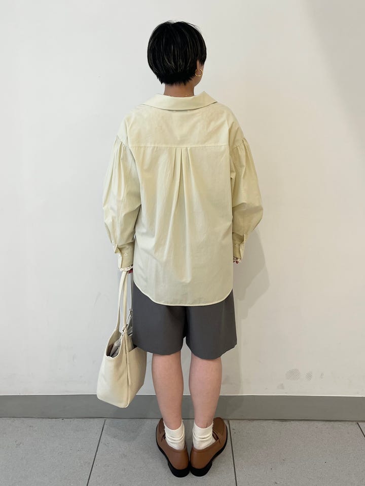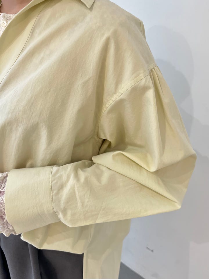 着心地:薄手のサラッとしたシャツで肌触りがいいです。Vネックが深過ぎず、程よい抜け感がでます。ボリュームスリーブなので1枚で華やかさが出ます。
