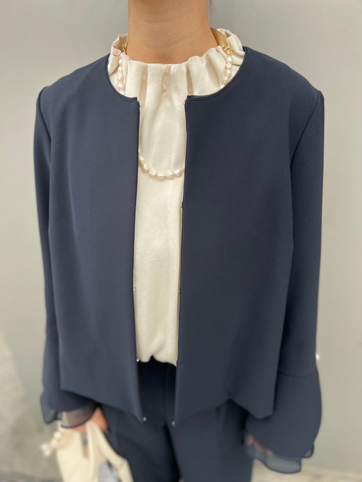 〔36〕ダブル クロス 重ね袖 ノーカラー ジャケット(セレモニー対応可)