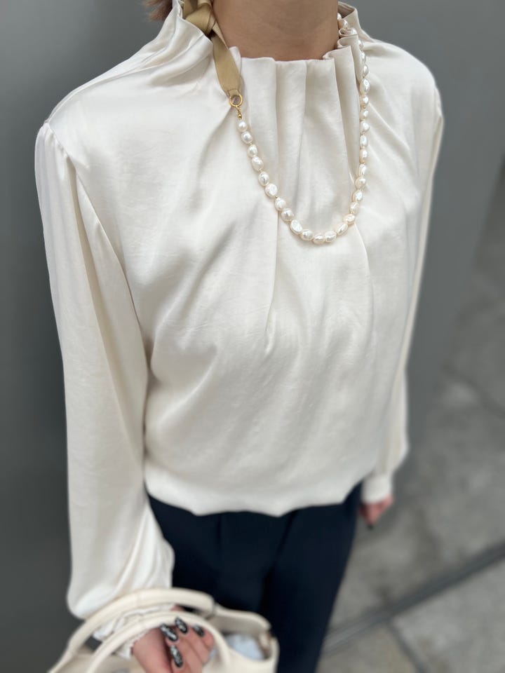 〔ONE SIZE〕【一部WEB限定】〈手洗い可能〉ヴィンテージ サテン ネック ギャザー ブラウス