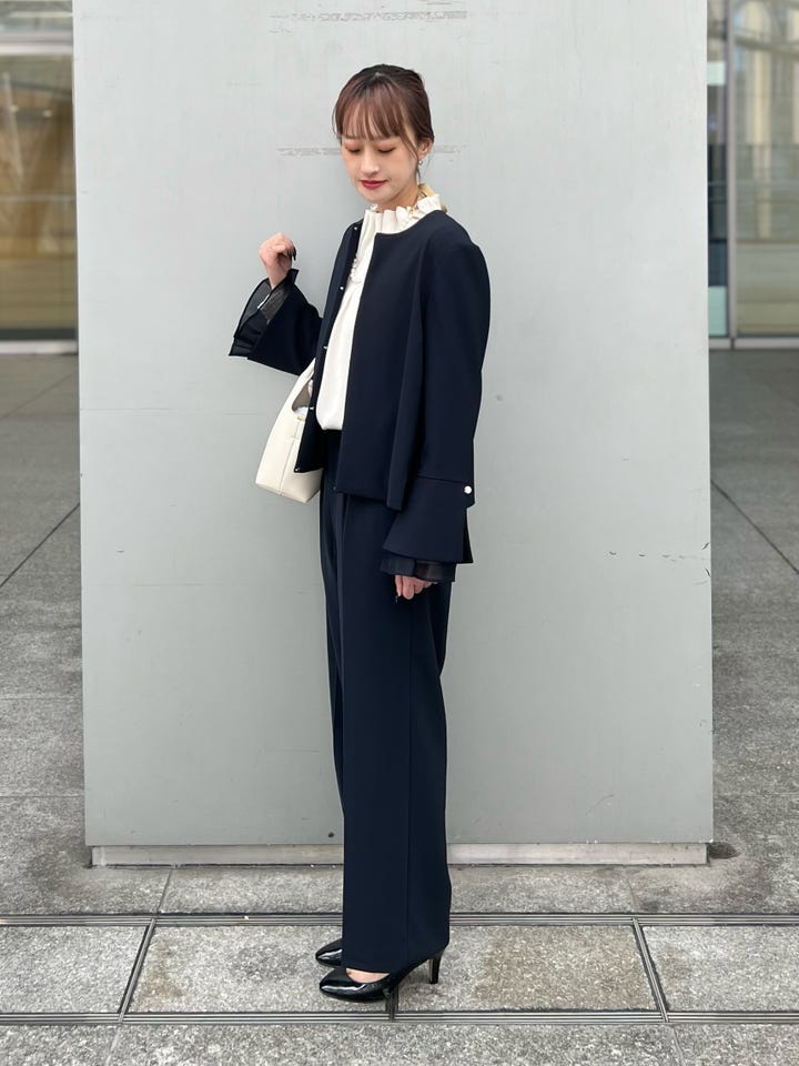 サイズ感: 着丈は長すぎず、低身長さんにもおすすめです♪ノーカラー仕様なので、リボンやフリルブラウスなど出しても華やかさが増して素敵です。(卒業式・入学式・学校行事・七五三・会食など)