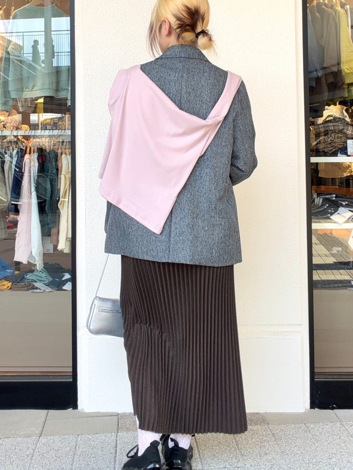着心地: やや大きめで着れるサイズ感で、裏地がついているのでアウター代わりにも使って頂けそうです!