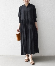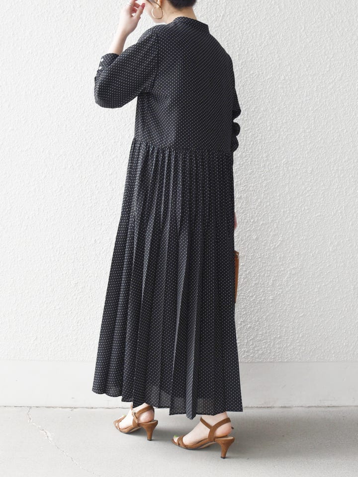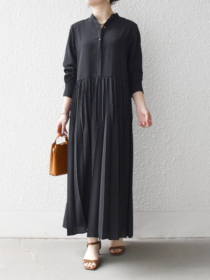 着用アイテム:SHIPS any:〈手洗い可能〉ドット バンドカラー プリーツ ロング ワンピース