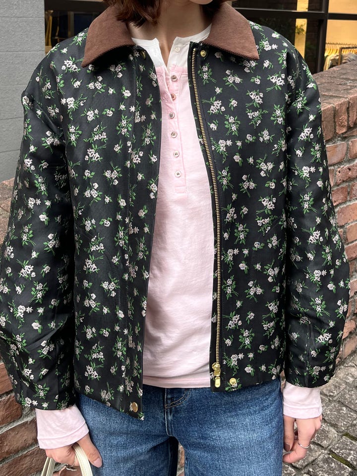 ◆ 商品名: 〈手洗い可能〉フラワー ジャカード ジップ ブルゾン