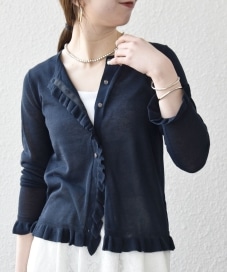 着用アイテム:SHIPS any:〈手洗い可能〉コットン ミックス シアー フリル カーディガン