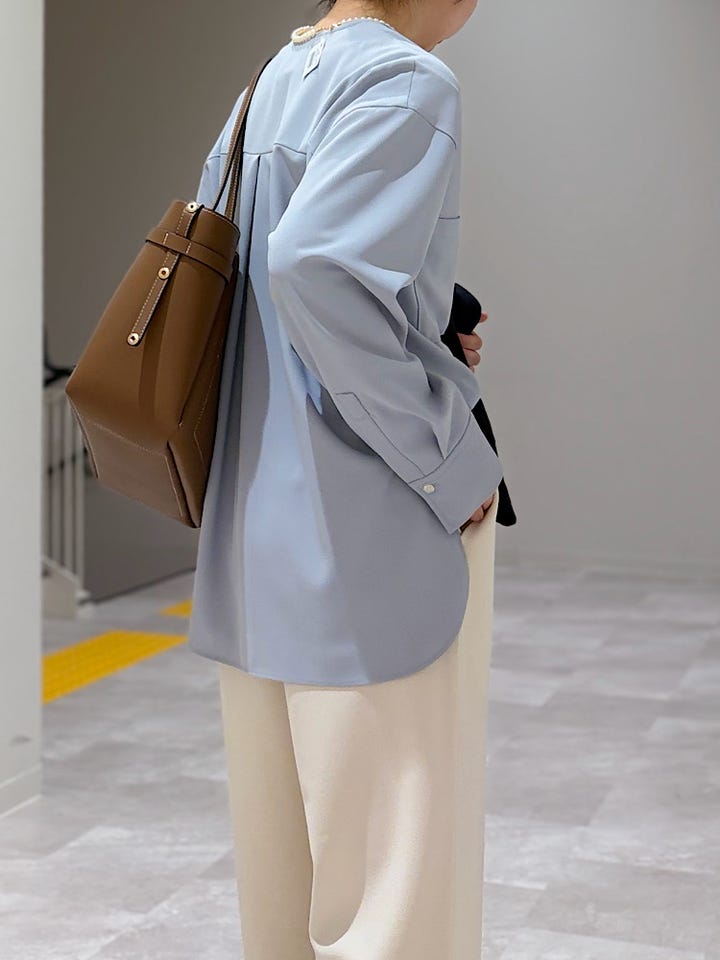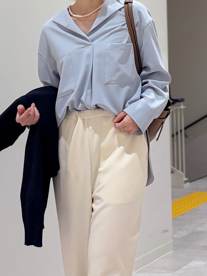 【素材感・着心地】サラッとした質感で着心地◎お仕事や普段着幅広く使って頂けそう♪透け感なし。