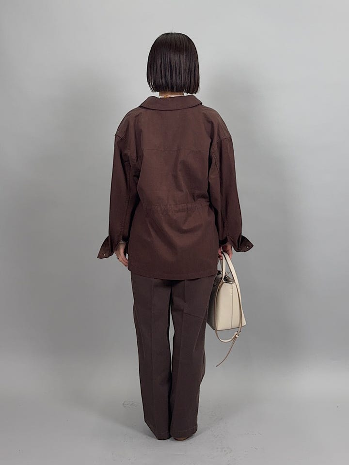 落ち感がありしなやかな素材感。肌触りが良くやわらかいので着心地がいいです◎季節の変わり目にちょうどよい厚みです。ウエストに絞りがついており形を変えられます。