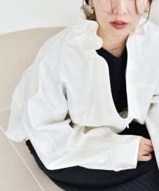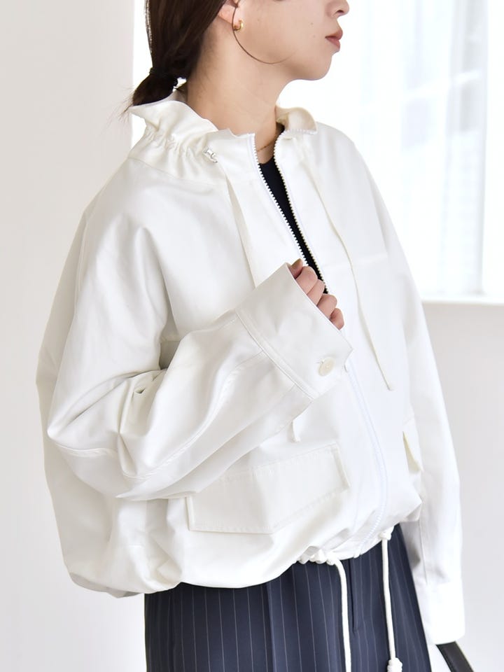 〔ONE SIZE〕quaranciel:〈手洗い可能〉ギャザー スタンドカラー ドロスト ショート ブルゾン
