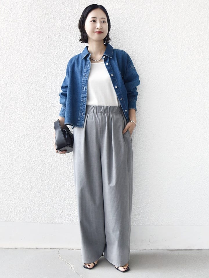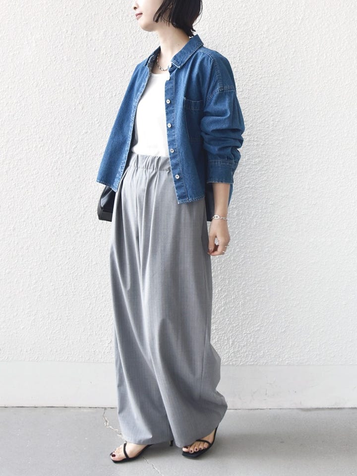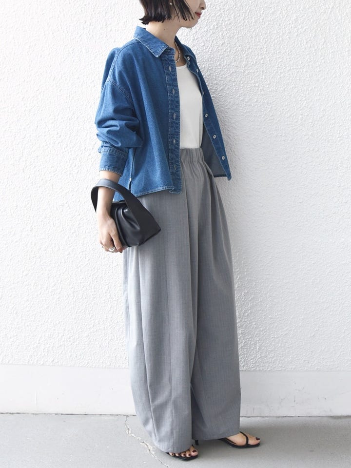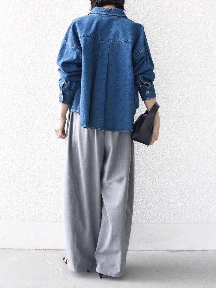 着心地:落ち感のある素材なので、ワイドな形でも着膨れ感はありません。