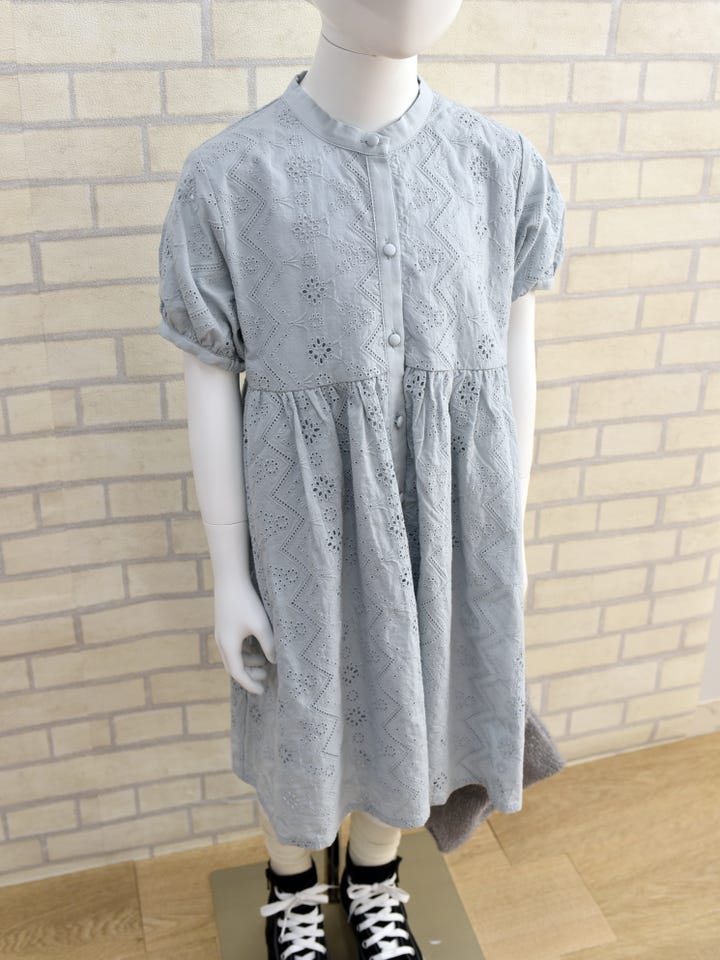 繊細なレース刺繍を施した女の子らしいフェミニンなワンピース。
