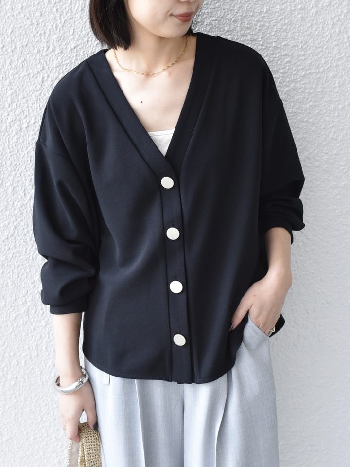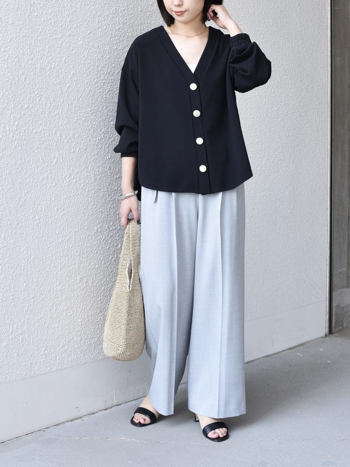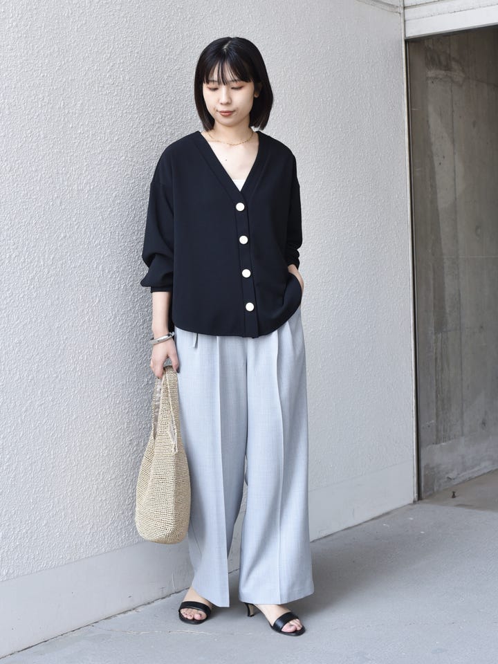 着用アイテム:〈手洗い可能〉カット ジョーゼット Vネック カーディガン(セットアップ対応可能)