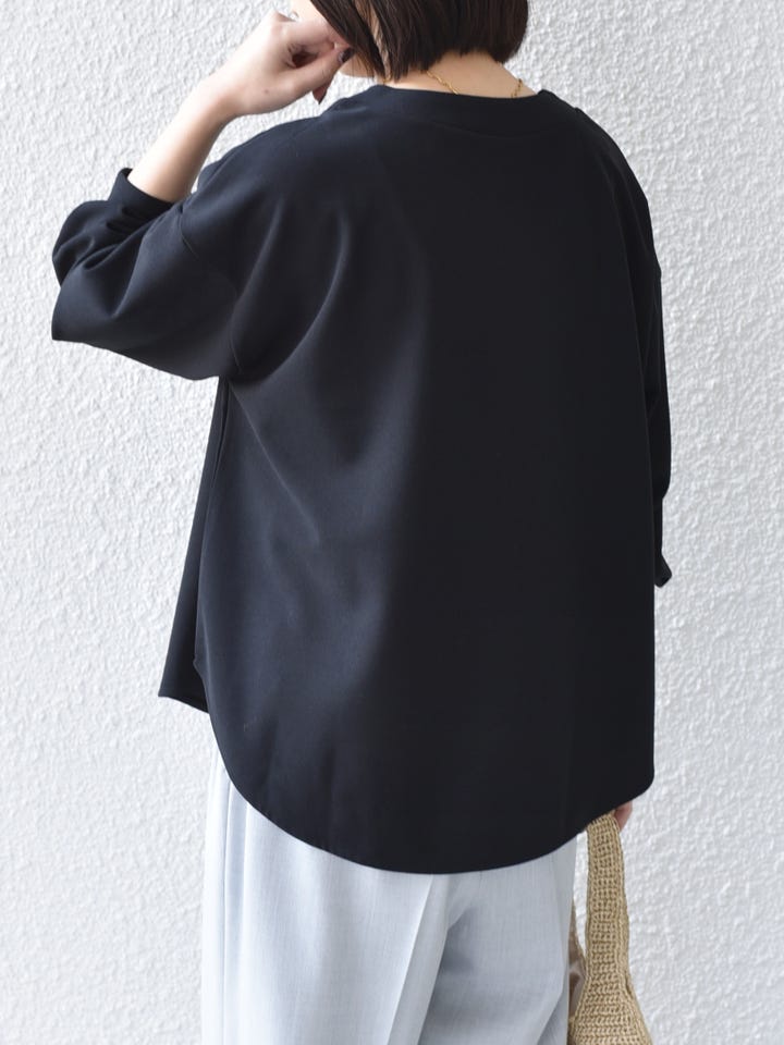 着用レビュー:伸縮性が良く着心地抜群です◎肩は少し落ちていますが、オーバーすぎないので、比較的何にでも合わせられます。