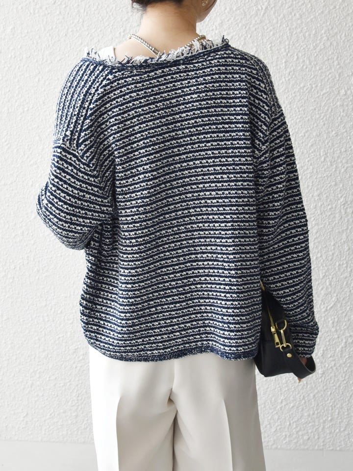 着用アイテム:SHIPS any:〈手洗い可能〉ツイード ライク フリンジ ニット ジャケット カーディガン