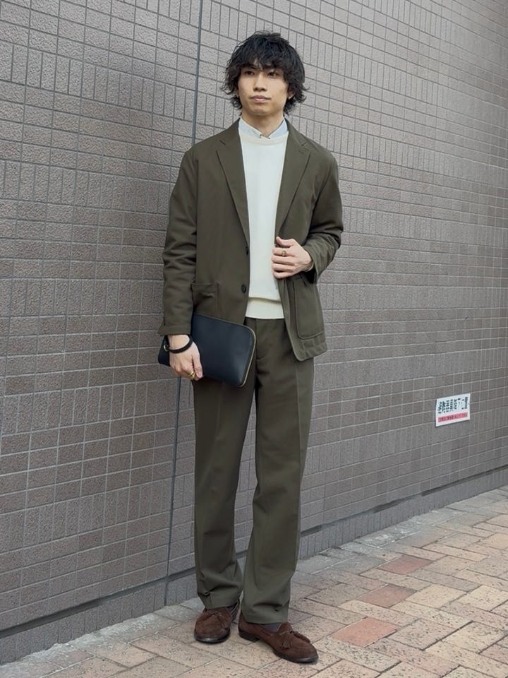 素材感: タッチも柔らかくジャケットやアウターのインナーにも使用いただける比較的シーズンレスな素材感になっています。