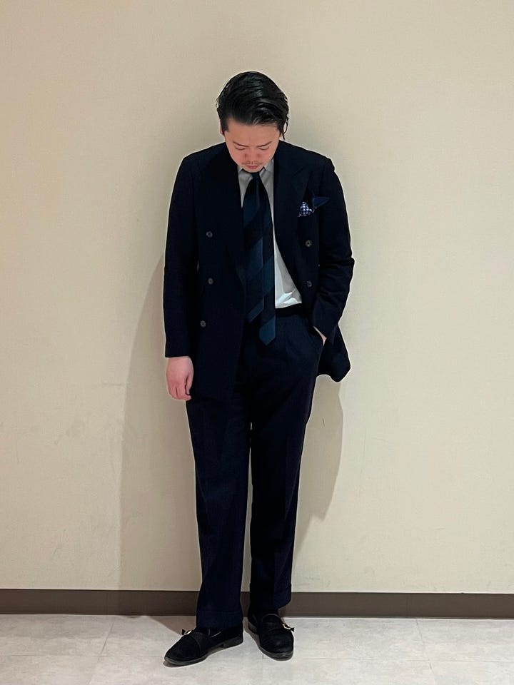 段落ちストライプで洒落っ気もあり、配色もビジネススタイルに落とし込みやすい