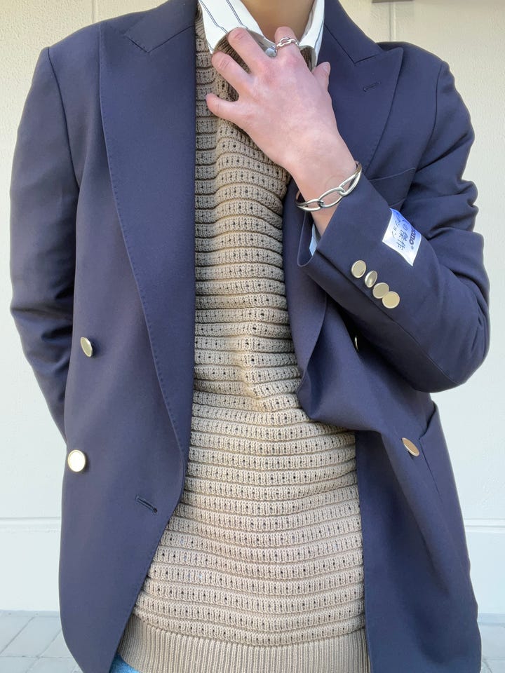 インナーなどを着ていただいた上で着用すると、ニットの編んである隙間から見えるインナーの色だったり、柄がよりおしゃれさを出してくれる、着心地の良いおしゃれなニットです。