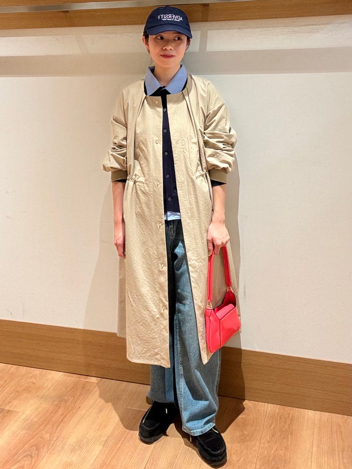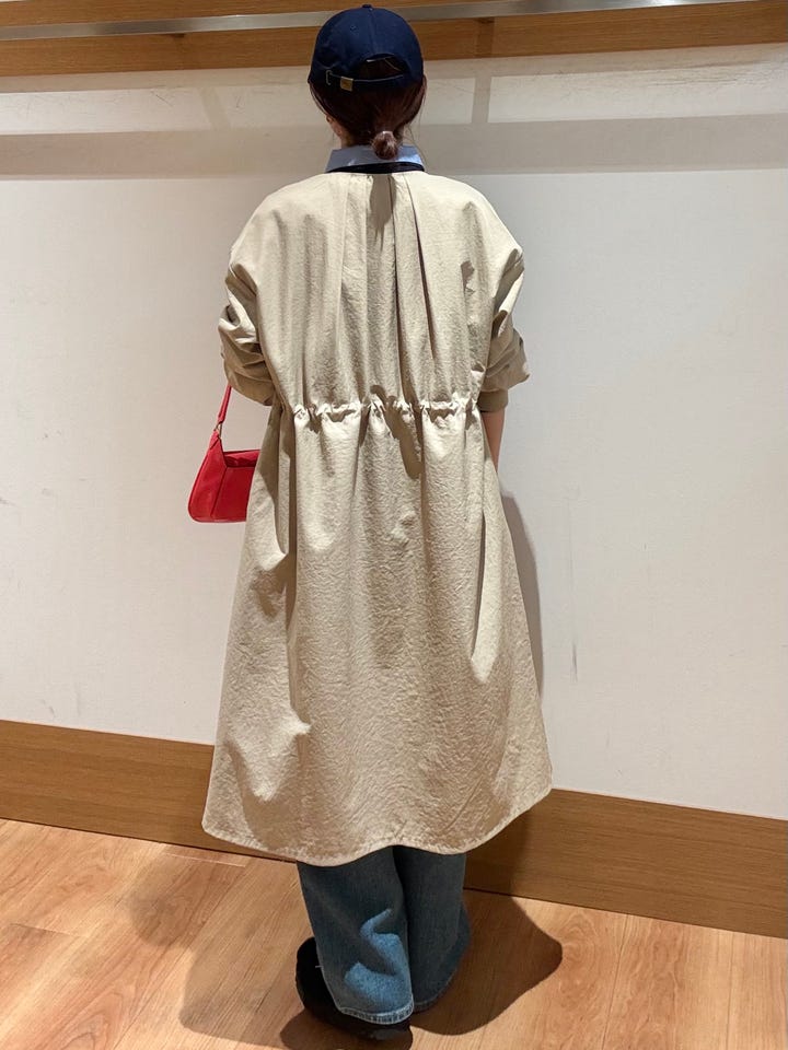 〔ONE SIZE〕SHIPS Colors:〈手洗い可能〉ツイル ノーカラー タック コート◇
