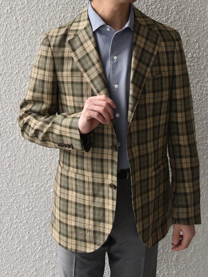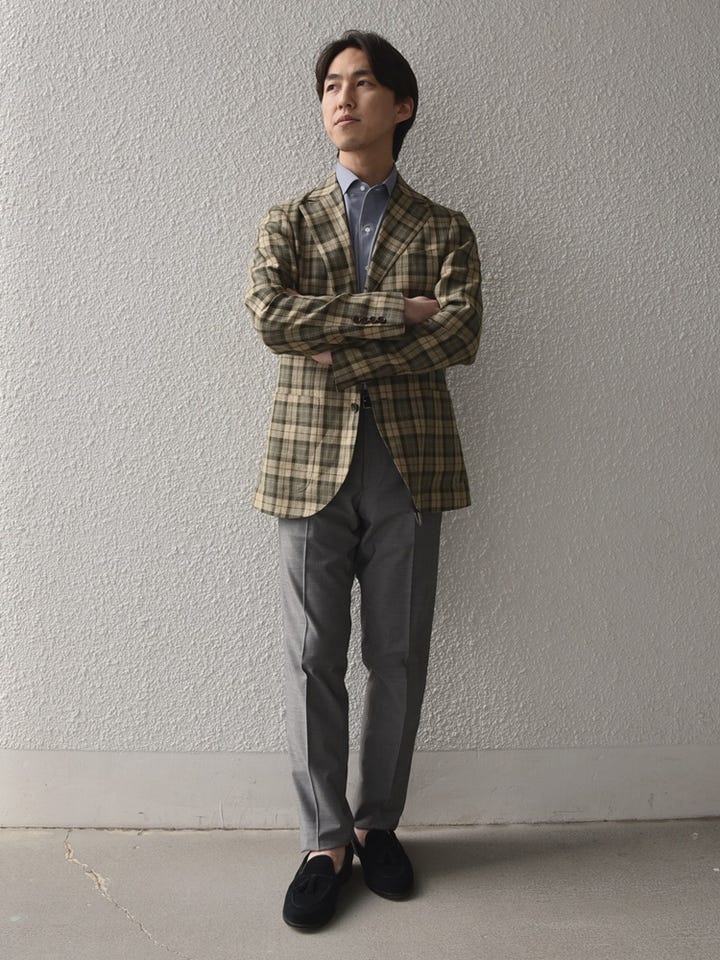 ジャケットは180年以上の歴史を誇る英国生地ブランドMOONのウール/リネン素材を採用。