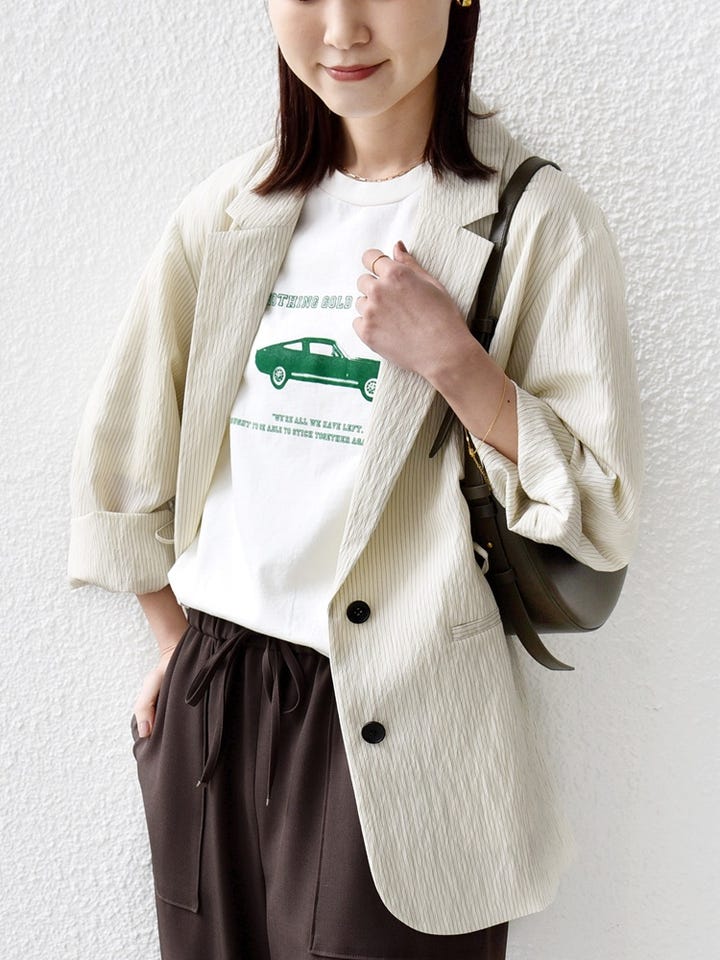 ■着心地:生地が軽くてやわらかいのでとても着やすいです。ラフに羽織れる春夏にぴったりなジャケットです。