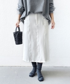 素材感/着心地:柔らかくとても履きやすいデニムスカートです。小柄な方でも長さを気にせずに着用できます!