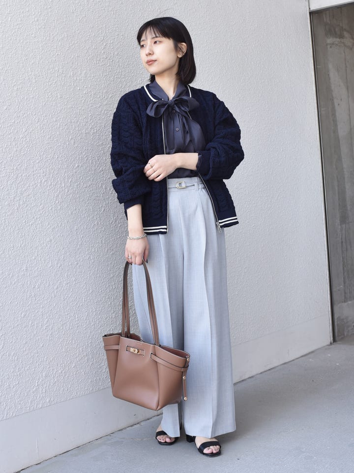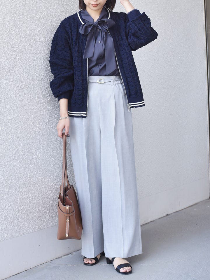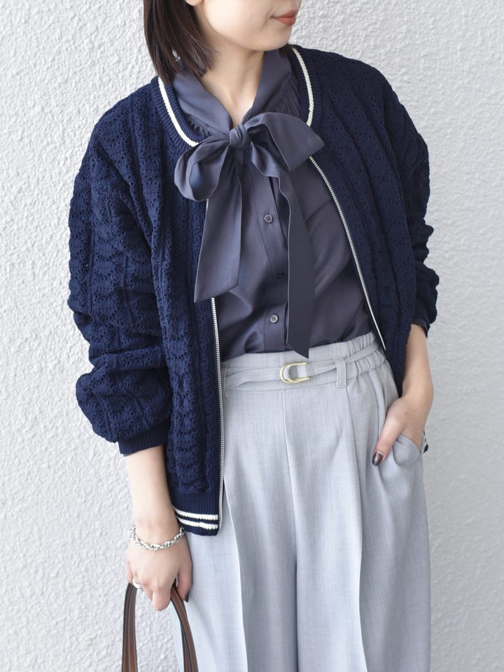 着用アイテム:〈手洗い可能〉柄編み ジップ カーディガン◆