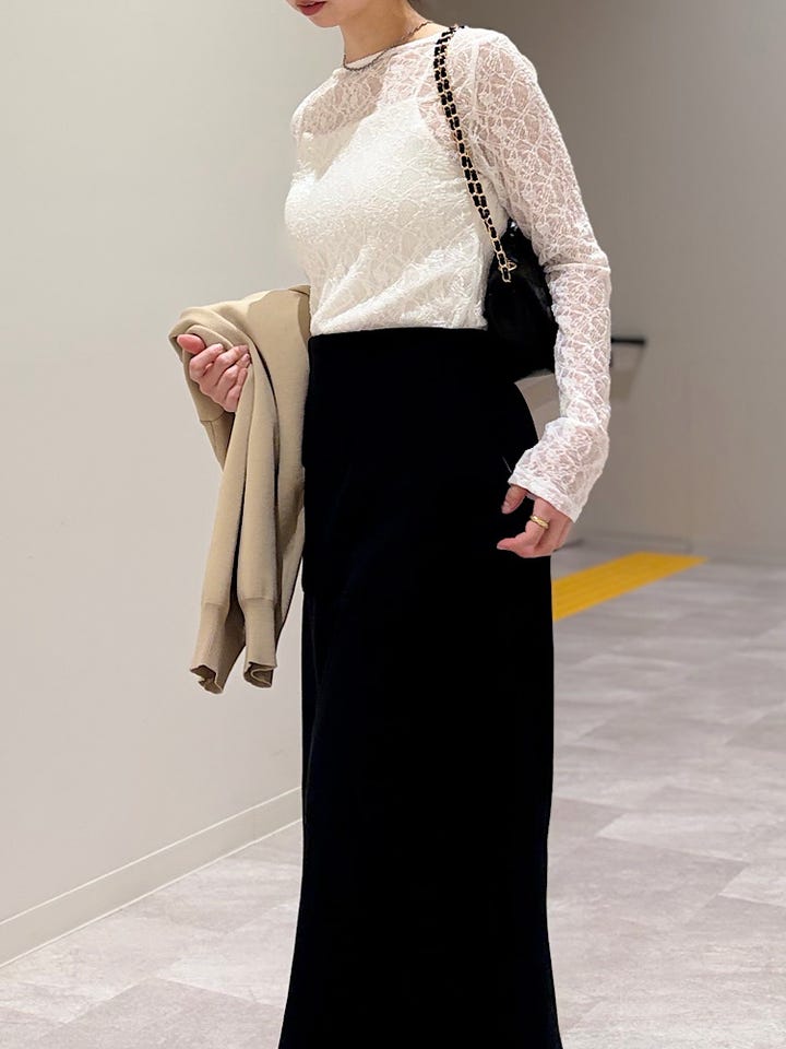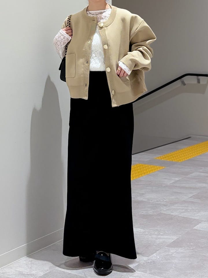 丈長めで身体のシルエットも拾いにくくタイトスカートが苦手な方にもおすすめです!