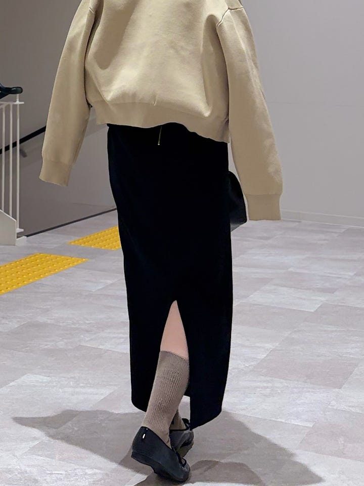 【素材感・着心地】オールシーズン着用頂け、スリットも入っている為靴下やタイツを見せたコーデも可愛いですよ♪