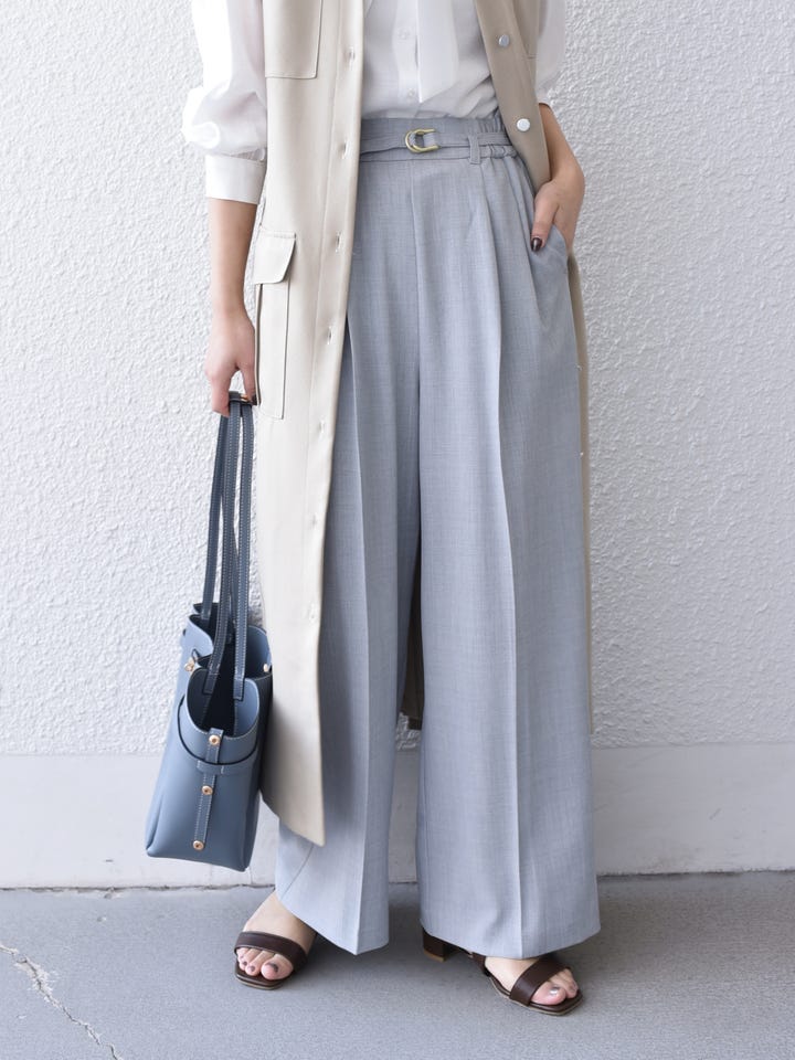 〔MEDIUM〕SHIPS Colors:〈手洗い可能〉ドライ メランジ ベルテッド パンツ(セットアップ対応可能)