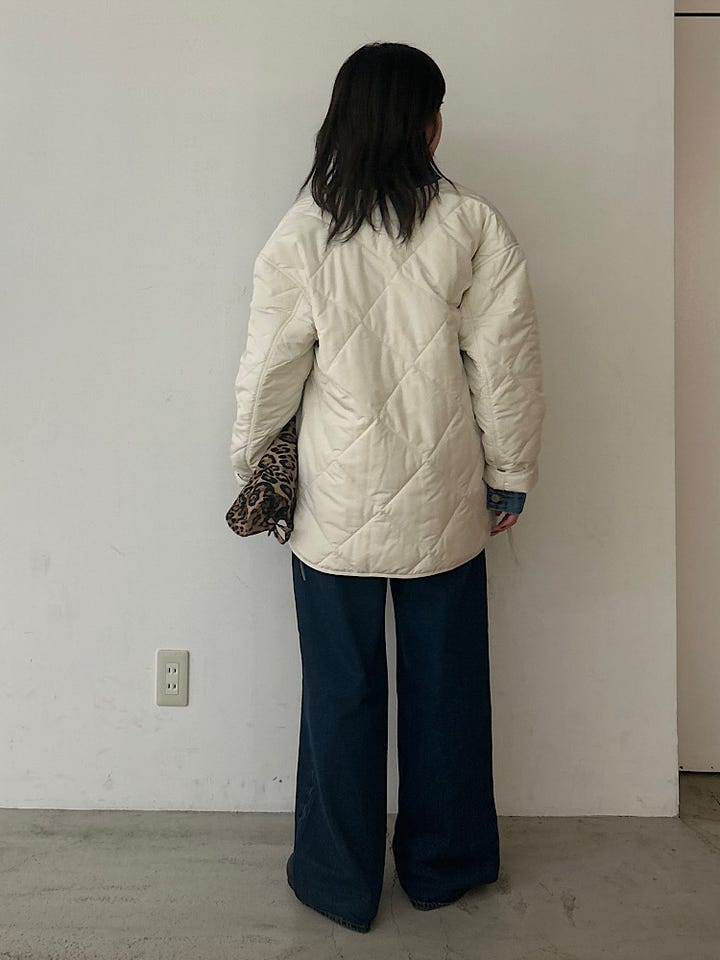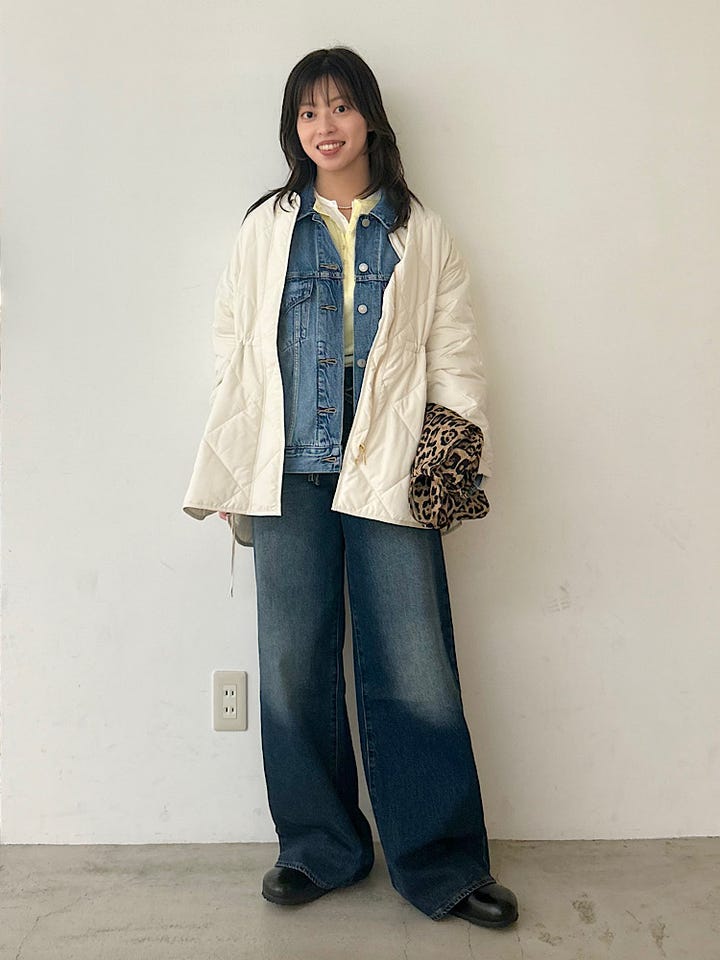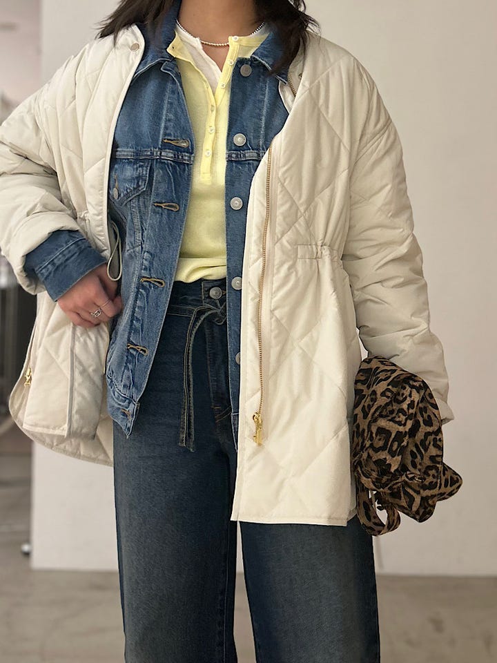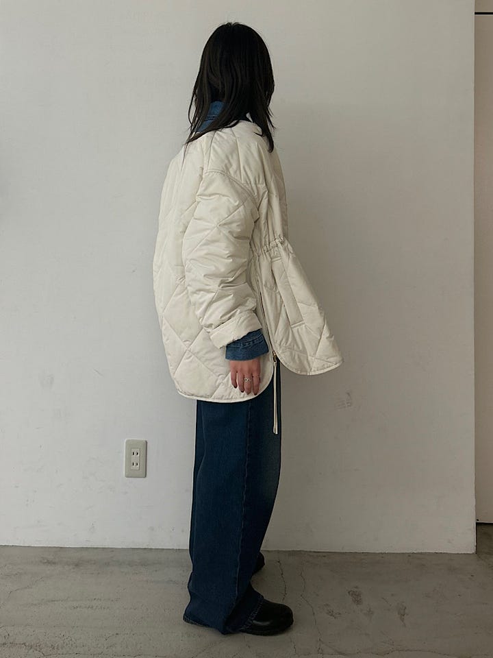 サイズ感: 中にトレーナーやセーターを入れてもゆとりがあります。着丈はヒップが隠れるくらい。横もジップ付きで、あけるとスリットにもなります。