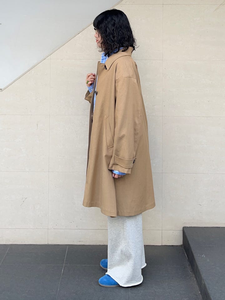 割とぶかっとした、メンズライクなコートです。スーツの上からお仕事にも着ていただけますし、デニムやスウェット等でカジュアルにも合わせていただけます◎ 長さの割に軽いのもおすすめポイントです。