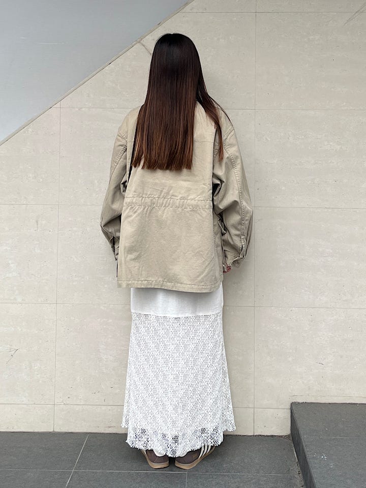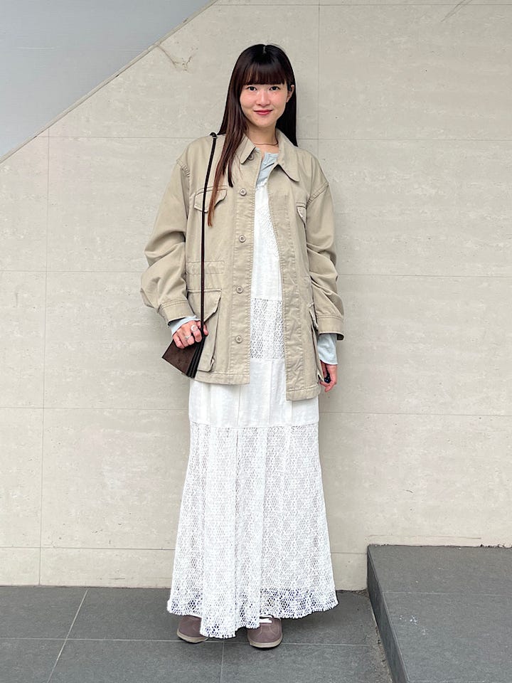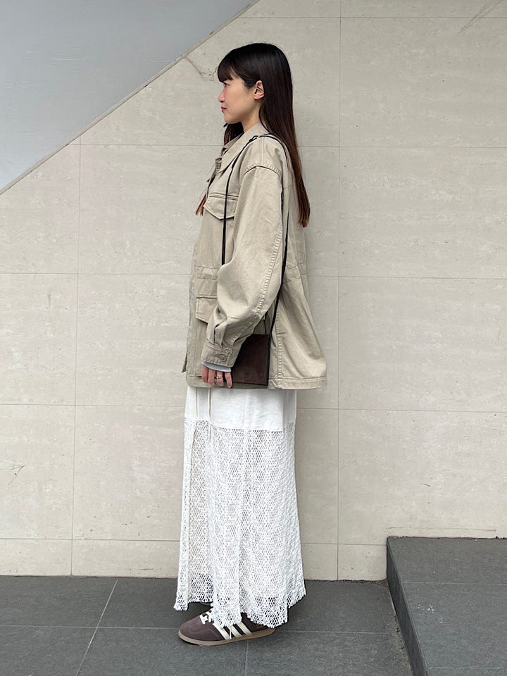 オーバーサイズで程よくボリュームが出るのがとても可愛いです。春先に軽めの羽織として持っていると重宝します。