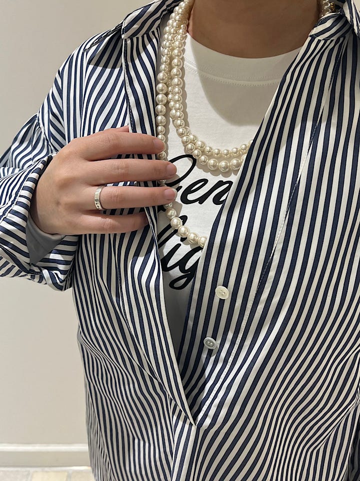〔ONE SIZE〕〈手洗い可能〉無地 / ストライプ サイド スリット スキッパー コットン シャツ