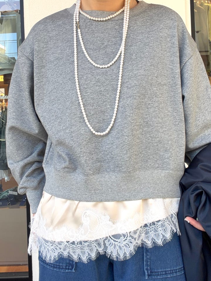 レースの部分がレイヤード風になっていて一枚だけでもオシャレです!