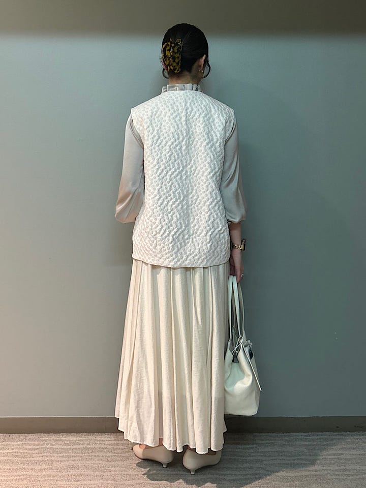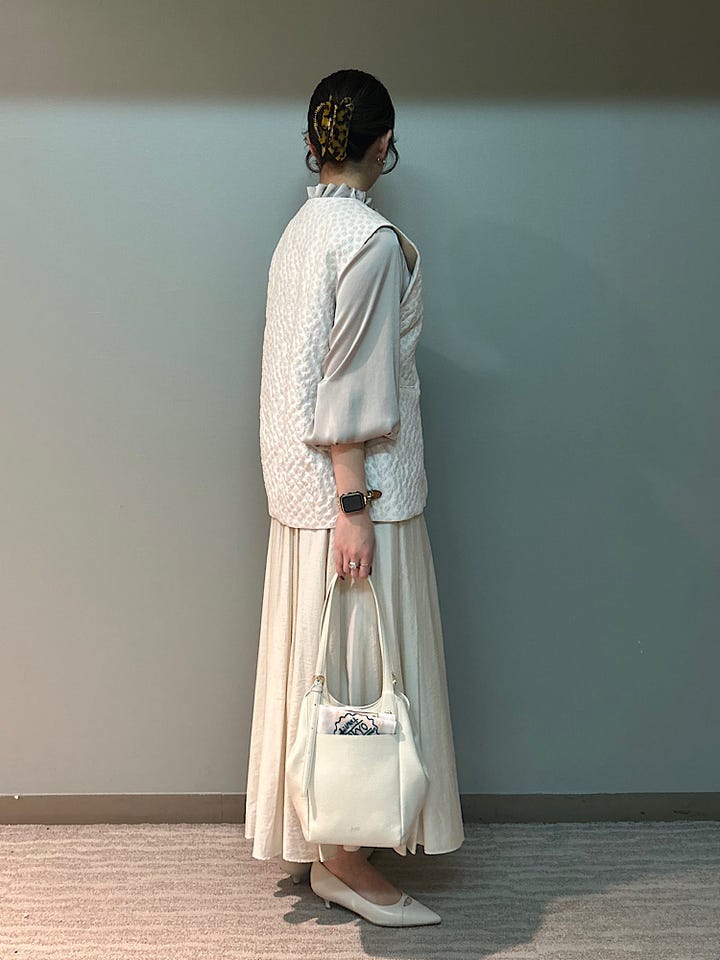 着心地:ジャカード素材で表面感があります。パールボタンで華やかに。