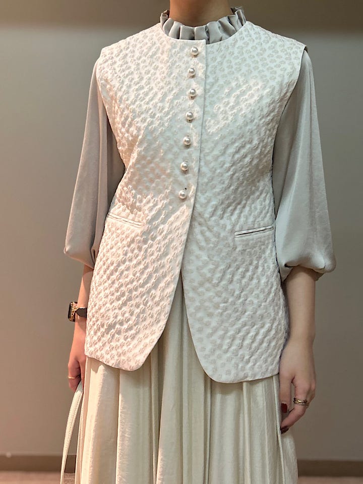 〔ONE SIZE〕ミニ フラワー ジャカード パール モチーフ ボタン ジレ(セレモニー対応可)